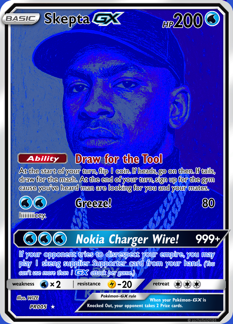 Featuring legendary MCs like Wiley, Skepta, JME, D Double E, Kano, Dizzee Rascal, Novelist, P Money, Ghetts, AJ Tracey, and more, these cards bring the raw energy of Grime to life in Pokémon’s iconic trading card style.